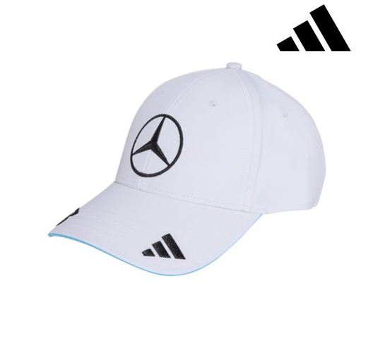 This cap delivers a clean, premium motorsport look inspired by mercedes fan gear. finished in crisp white, this cap features a structured crown and curved brim for a classic, sporty silhouette. the adjustable back closure provides a comfortable and secur