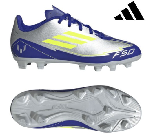 Adidas Football boots f50 club fg/mg j messi firm ground (Gender: Unisex Children, Size: 5, Colour: Royal/Silver/Flo Green)