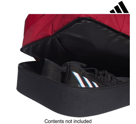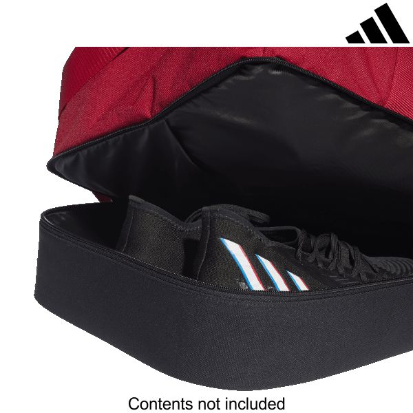 This tiro league duffel bag fromadidas is perfect for carrying all your soccer gear from home to the field. the hard bottom compartment keeps your valuables safe, and the side mesh pocket is perfect for holding water bottles. the adjustable shoulder strap ensures comfortable carrying, and the u-shaped opening allows easy access to your belongings on your way to the locker room.