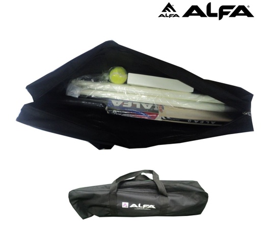- A bat, 2 light tennis balls, 3 stumps, 2 bails and stylish carry bag