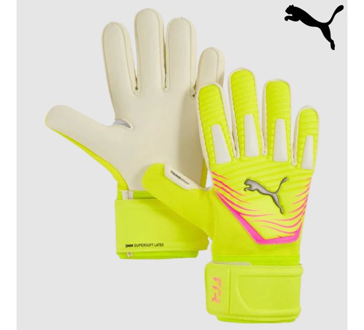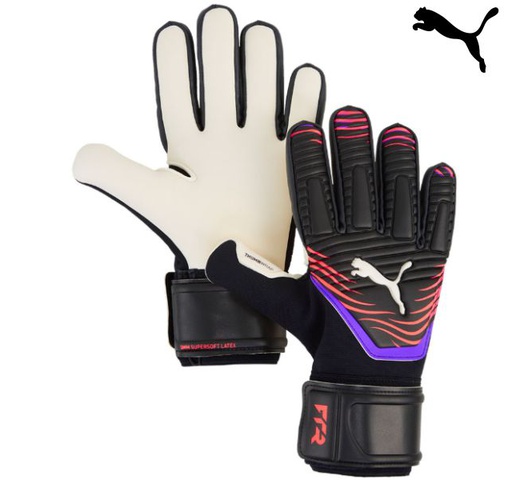 Unleash your inner goalkeeper with puma's latest gloves. featuring a 3mm supersoft latex palm for grip, a tight negative cut for control, and a full-length latex strap for secure closure.