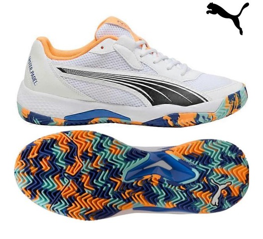 Puma Padel shoes nova court (Gender: Unisex Adult, Size: 9, Colour: White/Black/Orange)