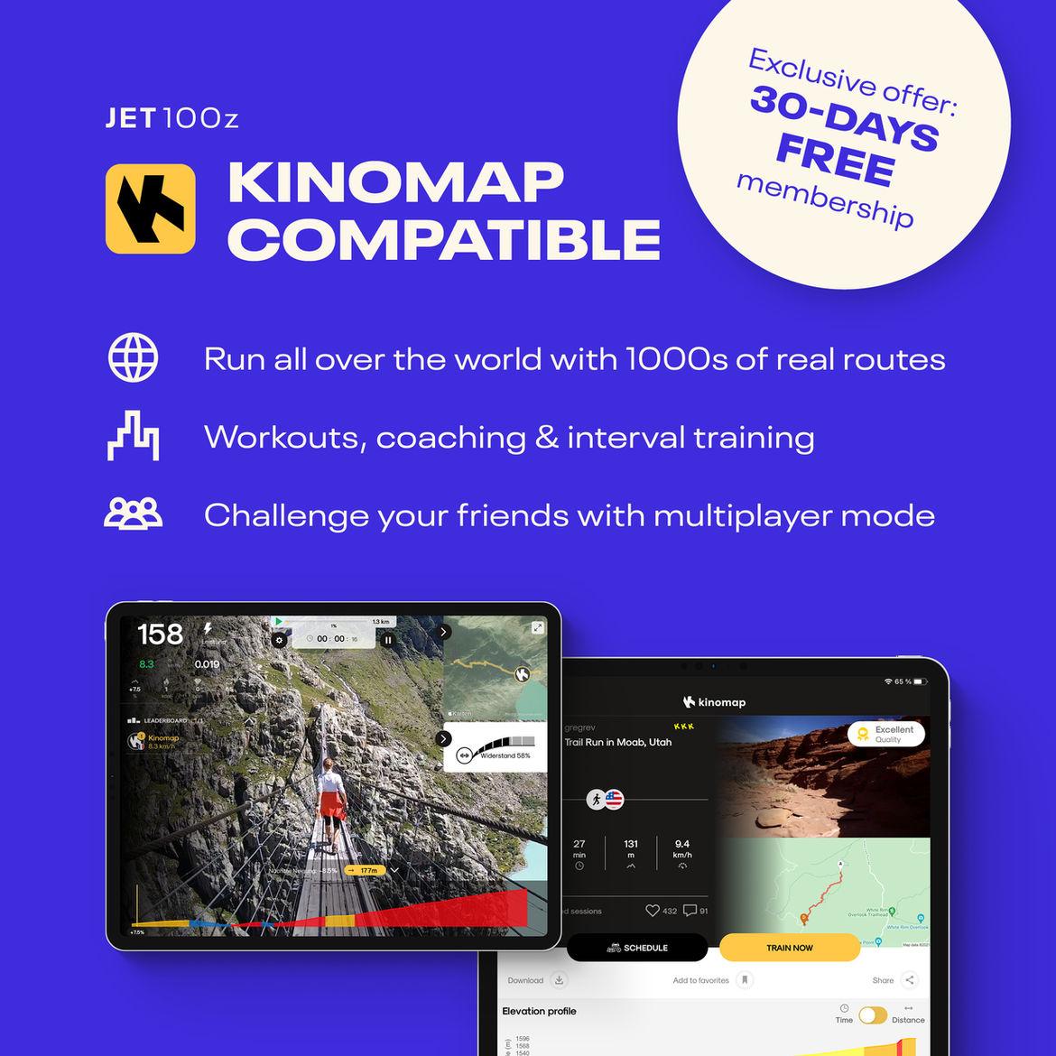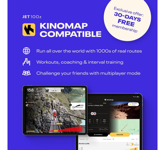 - kinomap compatible – run real-world routes, challenge your friends and analyse workouts
