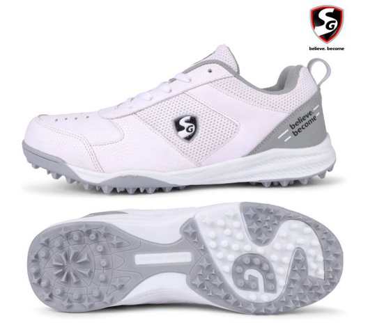 Sg Cricket shoes fusion (Gender: Unisex Adult, Size: 10, Colour: White/Grey)