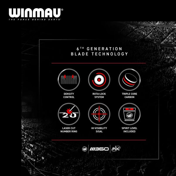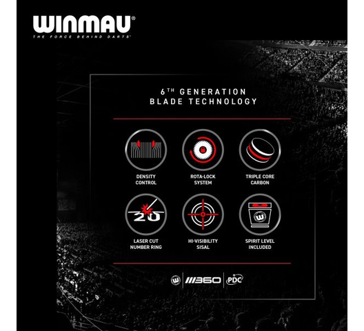 delivering industry leading blade 6 triple core technology, the 360 combines the elite playability trusted by the pdc, with a striking new 360degree symmetrical design.