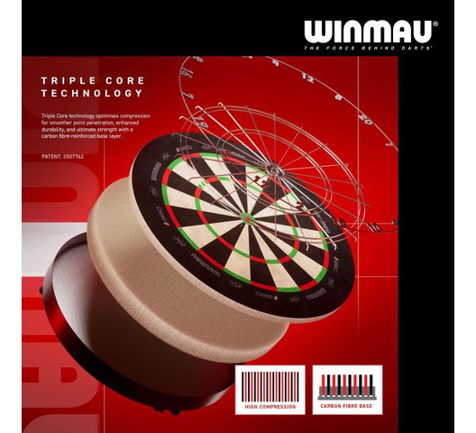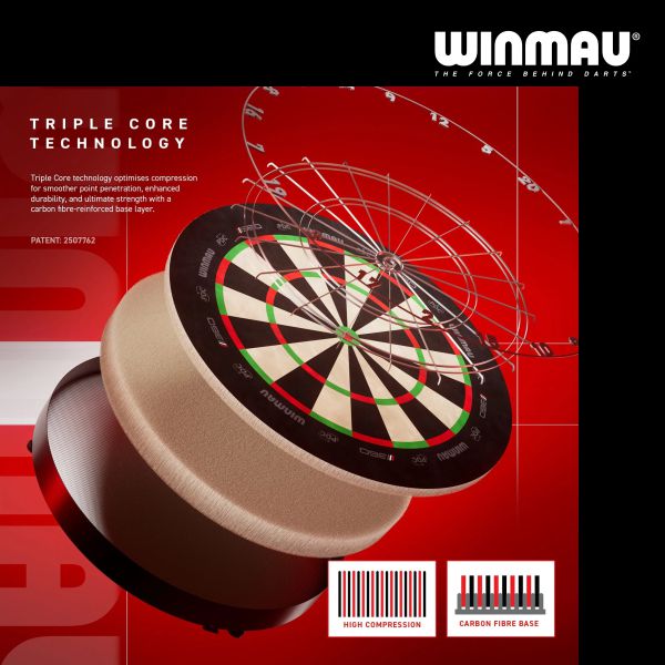 - the triple core carbon features an all-new patented system with a seamless playing surface and a third, high compression layer, with carbon fibre reinforced sisal. the ultimate in dartboard construction, providing optimal fibre density, unrivalled dart retention and maximum scoring.